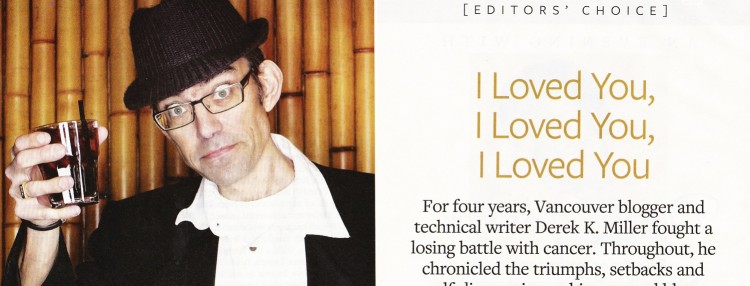 Derek Miller Story, Reader’s Digest cropped Published September 29, 2013 at 750 × 286 in ‘Please excuse the salty language’ – a cancer diary ← Previous Next →