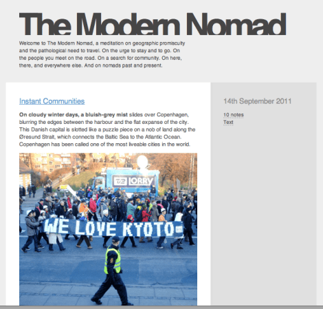 I am writing a non-fiction book about mobility, communities and the meaning of home. This Tumblr blog is a place I explore travel and migration.